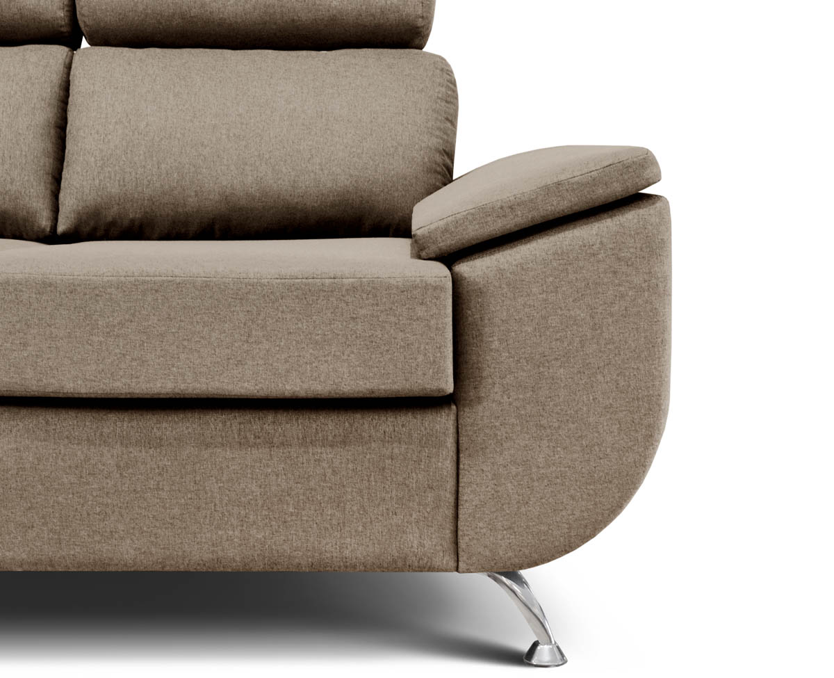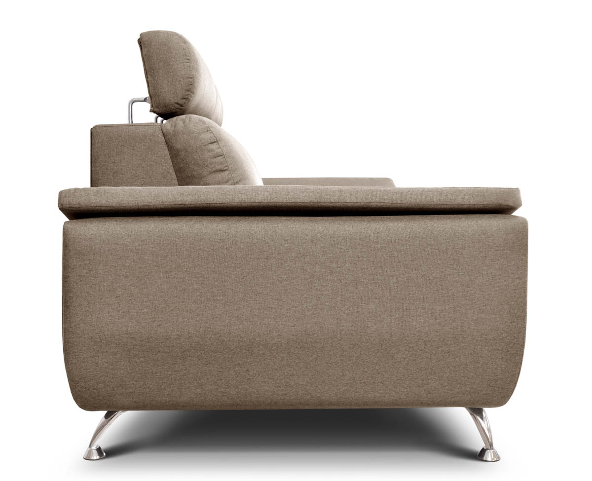 Sillón Berlín 2 cuerpos con patas de aluminio. Apoya cabezas con sistema móvil. Tapizado en tela Shot antimanchas. Disponible en diferentes colores de tapizado.
