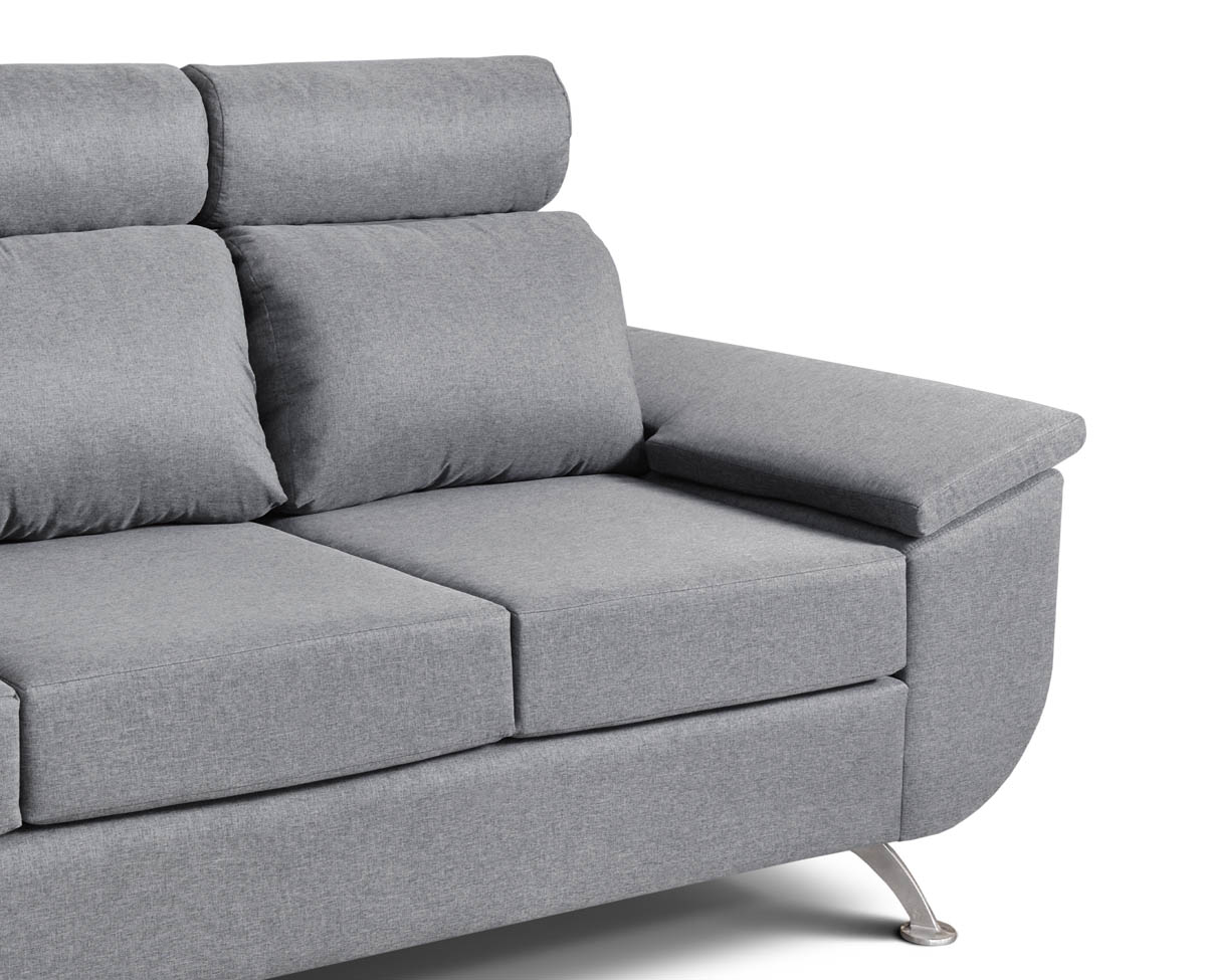 Sillón Berlín 3 cuerpos con patas de aluminio. Apoya cabezas con sistema móvil. Tapizado en tela Shot con tratamiento antimanchas. Disponible en diferentes colores de tapizado.