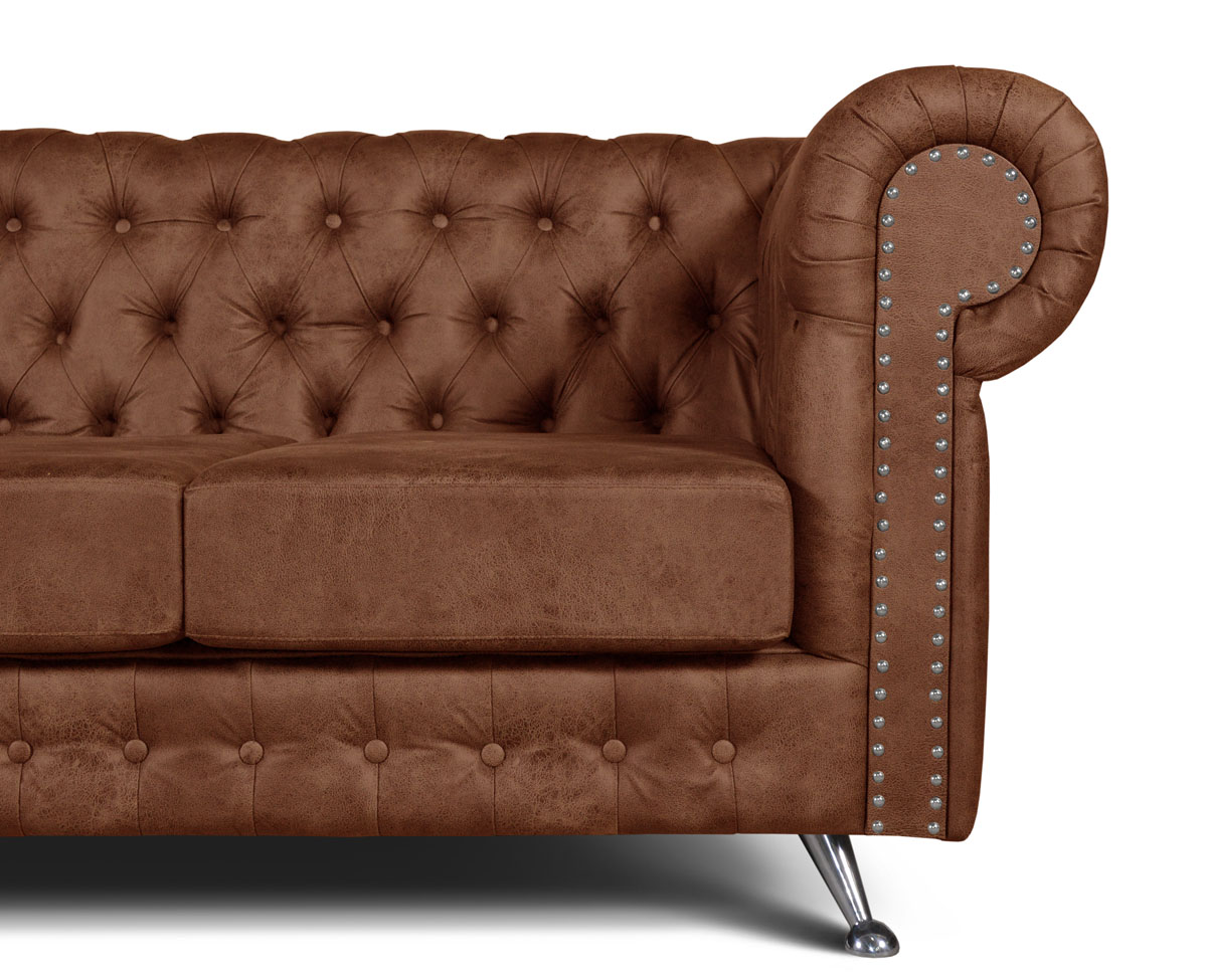 Sillón Chester Field con patas de aluminio. Disponible en diferentes colores de tapizado.