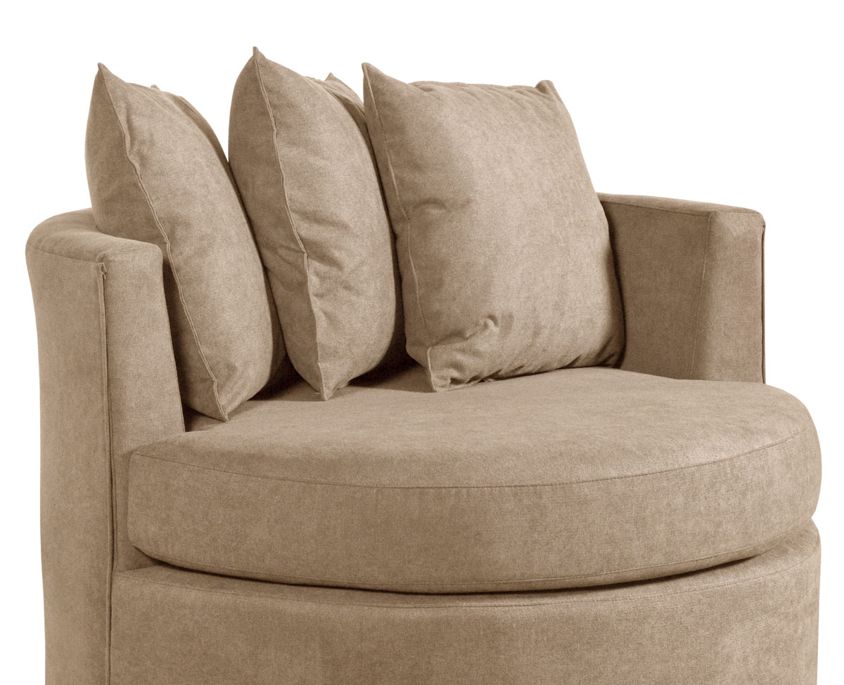 Sillón estilo Cuddler Chair tapizado con TELA ANTIMANCHAS de primera calidad. Tejido de fibras sintéticas con pequeñas nervaduras aterciopeladas que varían en grosor. Variedad en colores.